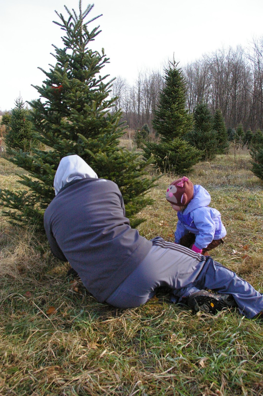 The main event, of course, was picking and cutting a tree. We had to walk for what seemed like forever to me, but was in reality a very short distance, to get to the cutting fields. But I made it both ways. Victory!